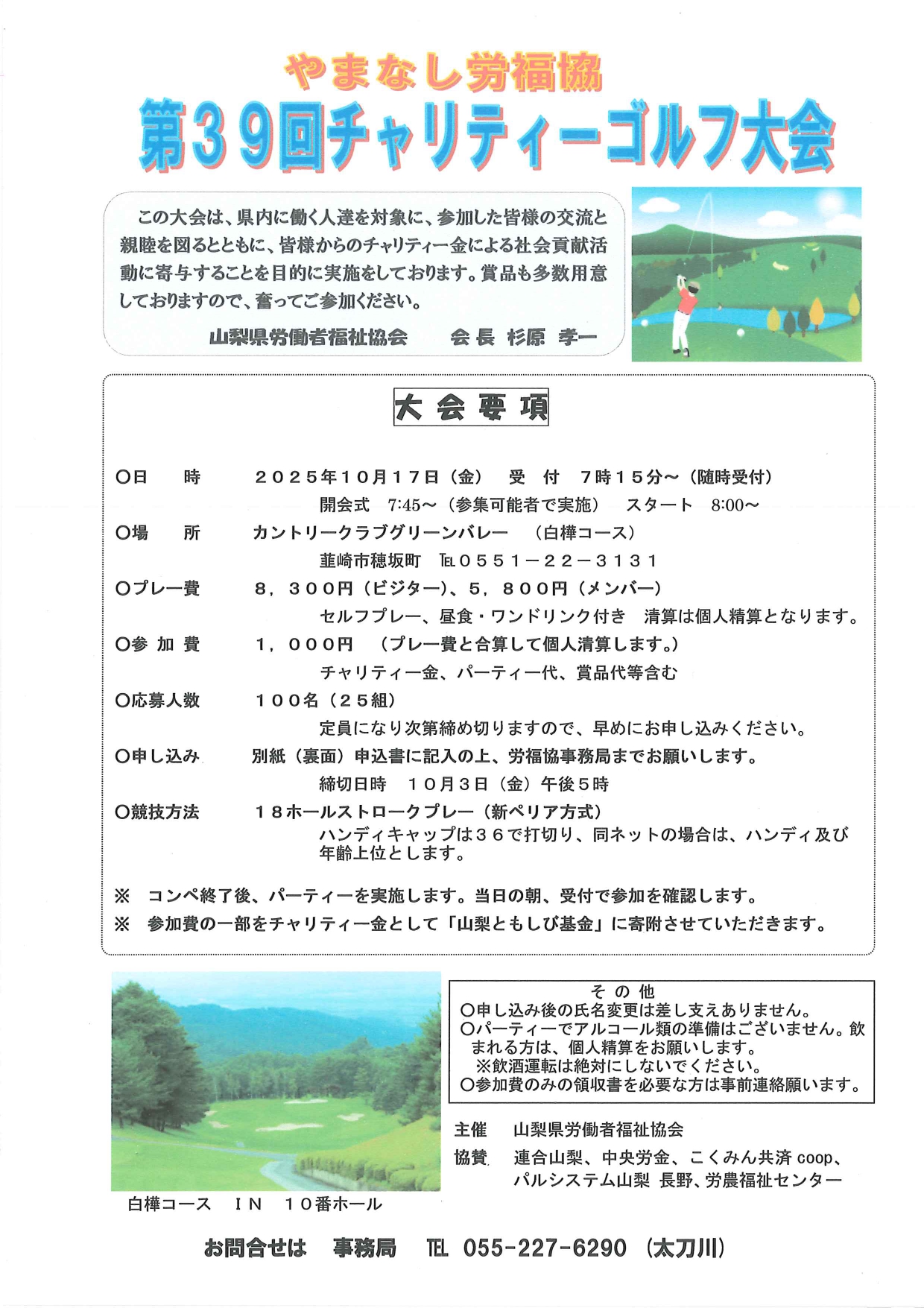 2025月10月17日(金)に第39回チャリティーゴルフ大会が開催されます。